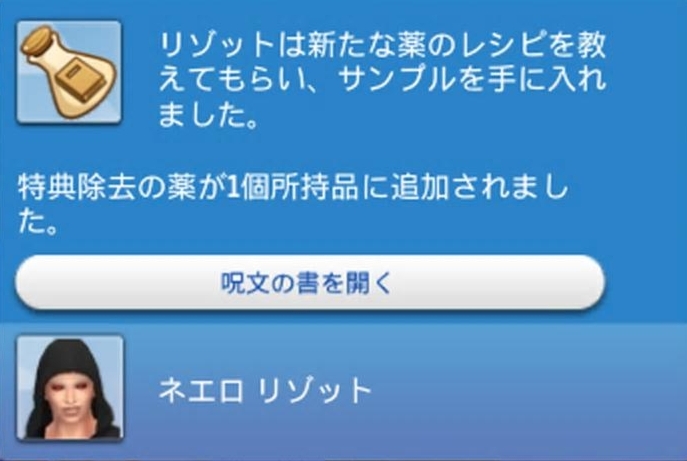 特質リセット薬で、リゾットの特質を元の『野心家』に戻します。