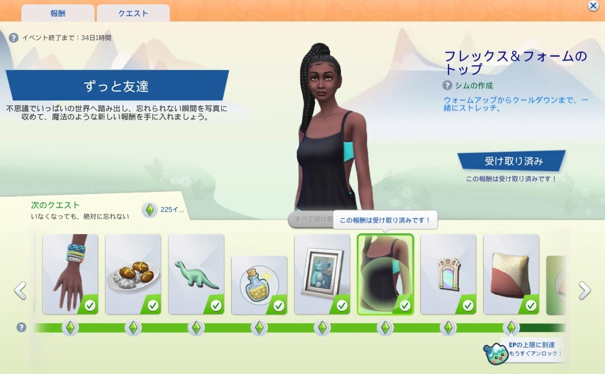 モダンなフォトフレーム、トップスなど。前回は不具合で報酬を全部取れませんでしたが、今回は問題なく全て回収できました。